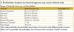 Discount rates are developed using a hybrid approach that blends bottom-up risk components with top-down calibration informed by institutional booking bases. This includes longevity uncertainty, carrier credit quality, liquidity considerations, operational execution risk, and premium-increase exposure. Sensitivity analysis, probability-of-loss metrics, expiry risk, and portfolio stress tests are included as standard.
